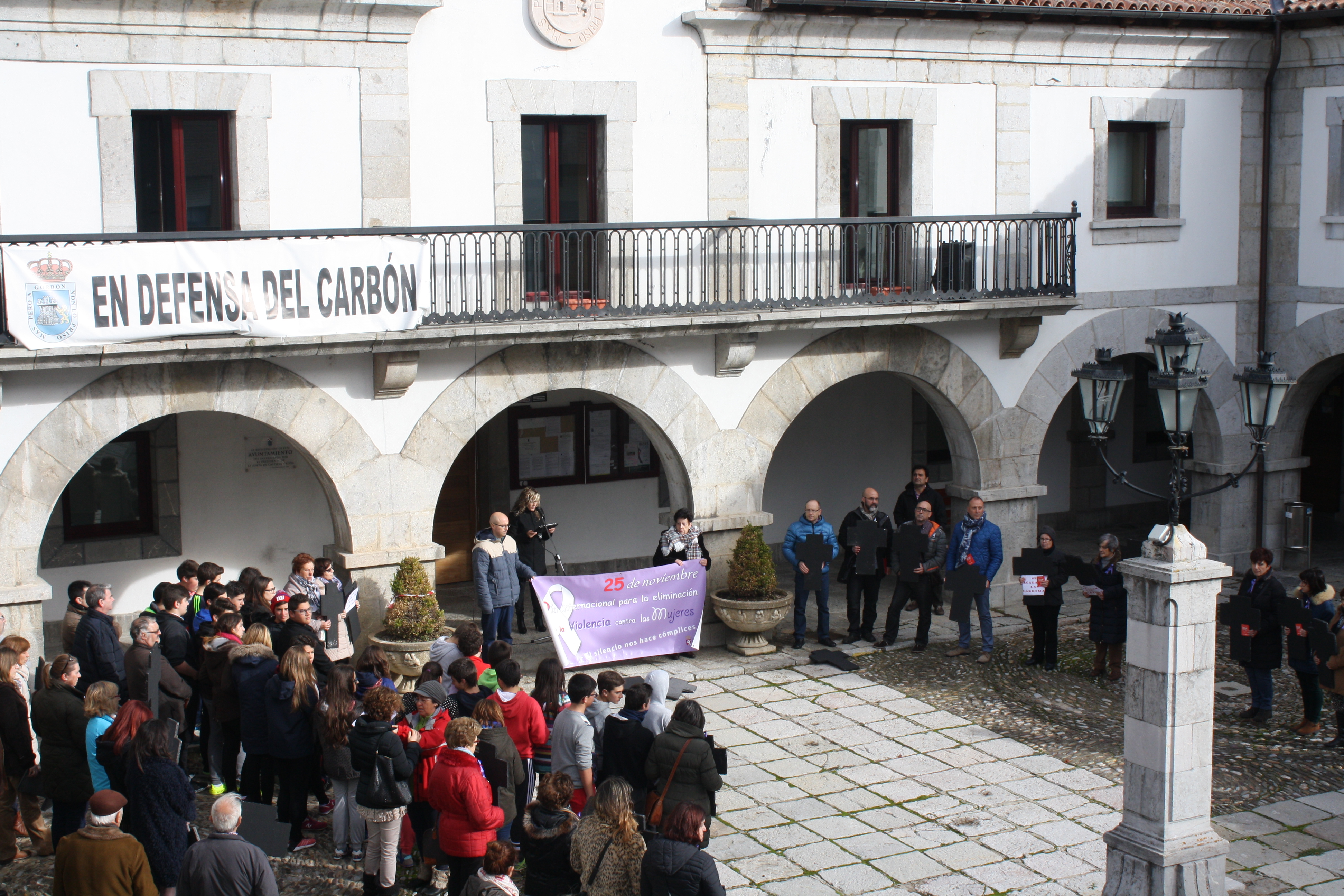 Desde aquí, desde esta plaza queremos enfrentarnos , a ti, a nosotros, a nuestra sociedad, con esta realidad tan espeluznante que son los asesinatos de violencia de género…sobre el suelo, las cruces…no son todas ni todos porque algunos de esos crímenes no computan para la estadística… Y si, tambien hay hombres, menos que mujeres, pero los hay…y niños…porque el ASESINO también les considera “Cosas” de su propiedad, también “son suyos para matarles” igual que a «sus» mujeres… Y están los asesinados porque son familia o amistad o nueva pareja, …porque estorbaron al asesino en «su» irracional cruzada